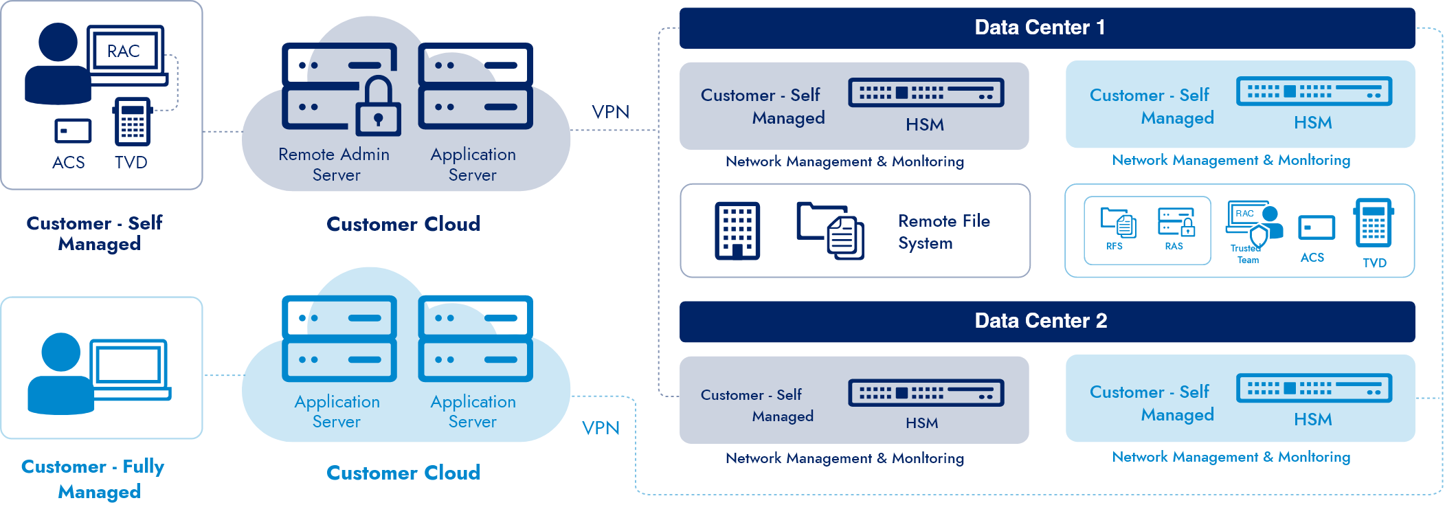 HSM is available as either a Self-managed or Fully-managed deployment, as detailed in diagram.