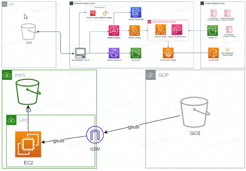 1) Within AWS, deploy the Data Replication Hub tool through CloudFormation, and then start the task of copying GCS to S3 in the UI interface